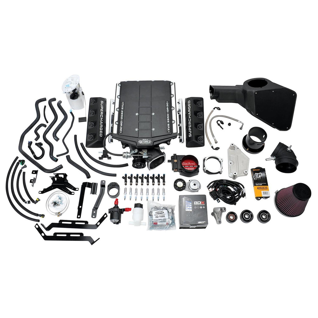 Edelbrock E-Force TVS2650 Mustang Stage 2 track system supercharger kits will transform your late model muscle car into a force to be reckoned with! The kits utilize Eaton's TVS2650 supercharger rotors. The high twist, 4-lobe rotor design is 15 percent larger than the TVS2300 and features several improvements to maximize efficiency and performance at upper RPMs, including: