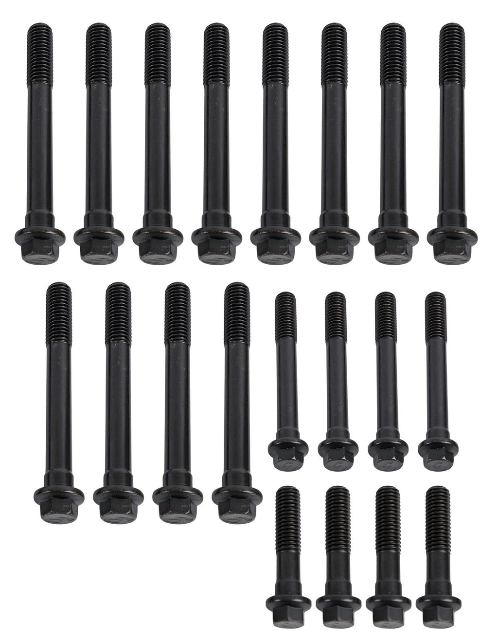 Edelbrock offers E-Series head bolt kits to install one set of cylinder heads. Each bolt kit includes the necessary bolts and washers for your application. E-Series bolts have a yield tensile strength of 190,000 psi for strong and reliable loading with generous filleting throughout to eliminate stress risers. Bolt threads are rolled after heat-treating for superior form and strength, while a small hex head provides extra space for socket clearance in tight situations. These cylinder head bolts have a durable black oxide finish with sealer and come with the distinctive Edelbrock "E" stamped into the hex head. Order the E-Series head bolt kit designed for your application needs.Brand: Edelbrock