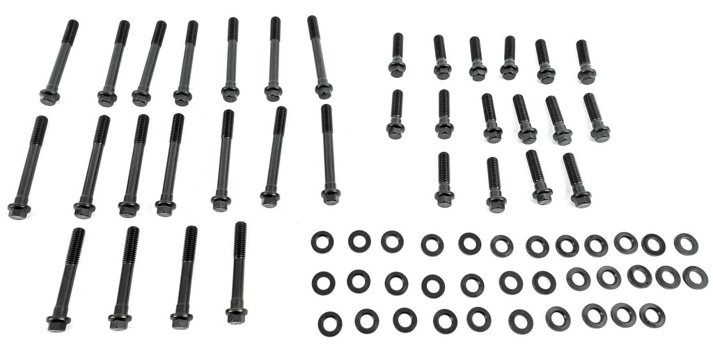 Edelbrock offers E-Series head bolt kits to install one set of cylinder heads. Each bolt kit includes the necessary bolts and washers for your application. E-Series bolts have a yield tensile strength of 190,000 psi for strong and reliable loading with generous filleting throughout to eliminate stress risers. Bolt threads are rolled after heat-treating for superior form and strength, while a small hex head provides extra space for socket clearance in tight situations. These cylinder head bolts have a durable black oxide finish with sealer and come with the distinctive Edelbrock "E" stamped into the hex head. Order the E-Series head bolt kit designed for your application needs.Brand: Edelbrock