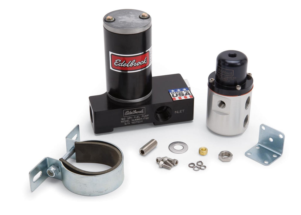 Edelbrock fuel pump and regulator kits are matched sets of consistent, smooth delivery! Edelbrock pairs both Quiet-Flo and street/strip electric fuel pumps with the perfect fuel pressure regulators for the high-pressure pump kits you need for EFI performance. Your high-horsepower fuel injected applications requiring additional pumping capabilities will benefit from these high performance partners. Quiet-Flo pumps are built with anodized aluminum housings and high-quality internals; regulators are machined from aircraft-quality aluminum and are gas and methanol-compatible. Pump up the flow with a perfect pairing--Edelbrock fuel pump and regulator kits.Brand: Edelbrock