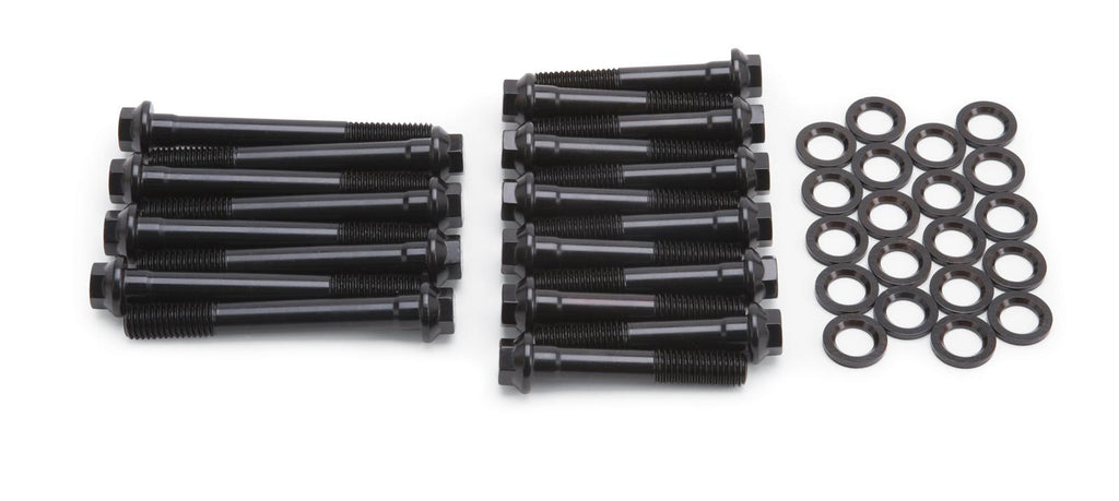 Manufactured by ARP, Edelbrock head bolt kits contain a complete set of the highest quality head bolts and hardened washers available. They are cold-formed to ensure molecular integrity and heat-treated prior to thread rolling and machining. Reduced-diameter bolt heads eliminate the need for valvetrain removal to facilitate cylinder head re-torquing. Hardened and parallel-ground washers are included, and they're rated at 170,000 psi.Brand: Edelbrock