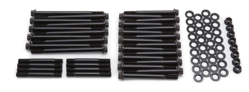 Manufactured by ARP, Edelbrock head bolt kits contain a complete set of the highest quality head bolts and hardened washers available. They are cold-formed to ensure molecular integrity and heat-treated prior to thread rolling and machining. Reduced-diameter bolt heads eliminate the need for valvetrain removal to facilitate cylinder head re-torquing. Hardened and parallel-ground washers are included, and they're rated at 170,000 psi.Brand: Edelbrock