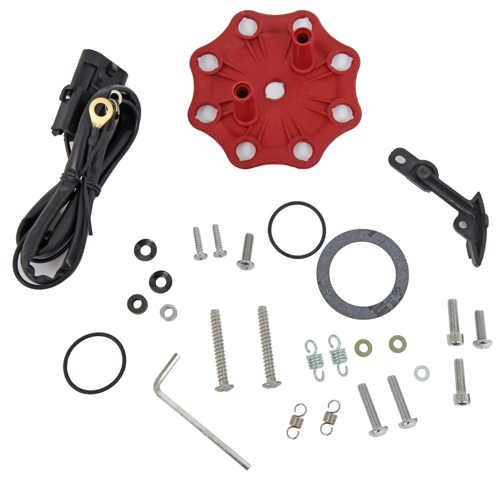 Edelbrock Max-Fire distributors are ready to run right out of the box—and are the perfect upgrade for your ignition system. They're ideal for replacing or upgrading from a points triggered distributor. Max-Fire kits feature precision machining for a perfect fit, along with a simple 3-wire hook-up for an easy installation (with no need to run an external ignition control box). The centerless ground shaft utilizes an upper sealed roller bearing with an extra-long lower bronze Oil-Lite bushing for smooth operation. The high-output magnetic pickup and large paddle wheel reluctor deliver a strong trigger signal at high RPM for maximum performance. All of these features allow Max-Fire distributors to provide unrivaled voltage to the coil, ensuring that you're getting maximum performance from your engine. (Edelbrock also recommends a new Max-Fire coil for maximum voltage output, ensuring you get the most from your high performance engine at higher RPM's.) Each distributor includes a cap, rotor, retainer and mechanical advance curve kit. Order the model recommended for your year/make and engine application.Brand: Edelbrock
