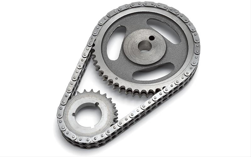 Edelbrock Performer-Link true roller timing chain sets are designed for use with either performance or stock cams. They have a solid-bushing chain for a true bearing surface that rolls with the sprockets, eliminating chain stretch. Crank gears are machined from SAE 1144 stress-proof steel. Most Edelbrock Performer-Link true roller timing chain sets have three keyways to ensure accurate timing for early or late model vehicles, and to allow you to set cam timing 4 degrees advanced, 4 degrees retarded, or stock. However, 50-state (stock replacement) sets have single keyways. Edelbrock Performer-Link true roller timing chain sets are not for use above 6,500 rpm.Brand: Edelbrock