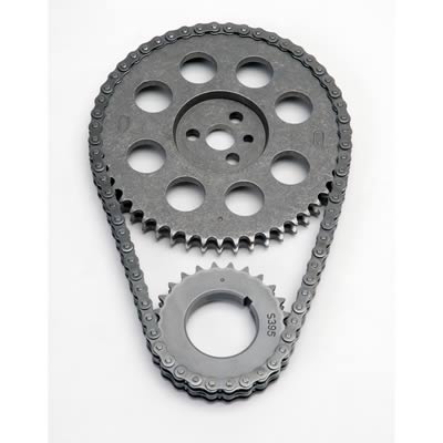 Edelbrock Performer-Link true roller timing chain sets are designed for use with either performance or stock cams. They have a solid-bushing chain for a true bearing surface that rolls with the sprockets, eliminating chain stretch. Crank gears are machined from SAE 1144 stress-proof steel. Most Edelbrock Performer-Link true roller timing chain sets have three keyways to ensure accurate timing for early or late model vehicles, and to allow you to set cam timing 4 degrees advanced, 4 degrees retarded, or stock. However, 50-state (stock replacement) sets have single keyways. Edelbrock Performer-Link true roller timing chain sets are not for use above 6,500 rpm.Brand: Edelbrock