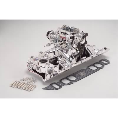 Edelbrock Performer RPM Air-Gap intake manifold and carburetor kits contain all of the necessary pieces to upgrade your induction system. They include an Edelbrock Performer RPM Air-Gap aluminum intake manifold that is available in a variety of finishes, an intake gasket set, intake manifold bolts, a carburetor stud kit, and an Edelbrock Thunder AVS 800 cfm electric choke carburetor. The Edelbrock Performer RPM Air-Gap intake uses an open air space that separates the runners from the hot lifter-valley cover. This results in a cooler, denser charge that means more power and excellent throttle response. Ready for a change? Try these Edelbrock Performer RPM Air-Gap intake manifold and carburetor kits for your musclecar, hot rod, truck, or ordinary street vehicle.Brand: Edelbrock
