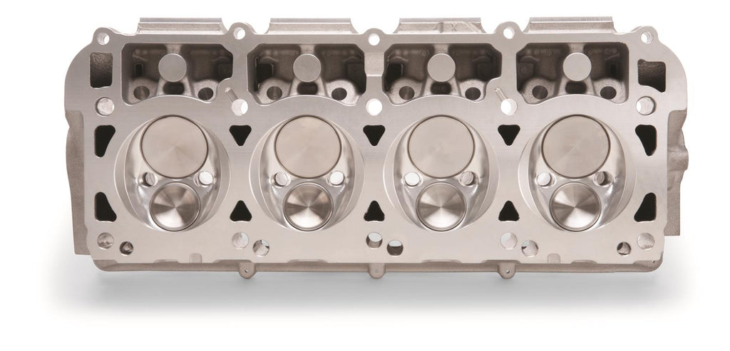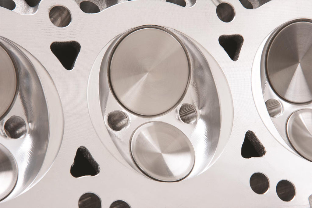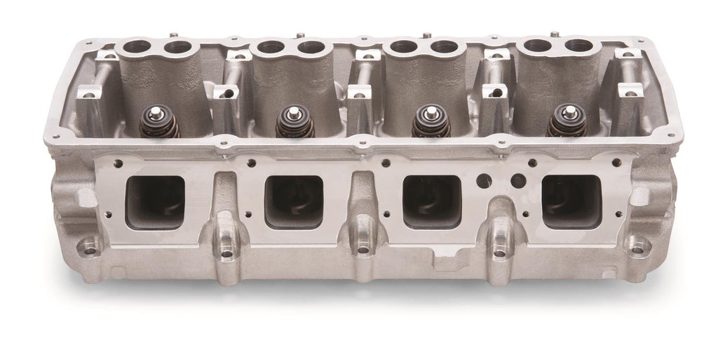 Edelbrock Performer RPM Chrysler Gen III HEMI cylinder heads are bolt-on performance upgrades for Gen III HEMI engines. They are designed to fit with the stock intake manifold, exhaust manifold, valve cover, rockers, spark plugs, and accessories, as well as Hellcat components. The cylinder heads have been machined to be used on either the driver or passenger side of the block. They are cast from A356 aluminum and are heat-treated to T6 specifications. Edelbrock Performer RPM Chrysler Gen III HEMI cylinder heads feature fully CNC-machined combustion chambers, along with CNC-profiled bowls and port entries/exits for improved airflow. They also feature more material in the deck and reinforced combustion chambers for increased cylinder pressures. The rocker bosses have been reinforced for improved stability and strength, and extra material has been added around the intake and exhaust ports to allow for porting in racing applications. Both the intake and exhaust port flanges have remained in the factory location for use with OEM components. The intake and exhaust valves have been tipped away from the bore wall to unshroud the larger valves, while maintaining factory geometry. The seat diameters have also been increased for improved heat transfer and durability over stock.Brand: Edelbrock