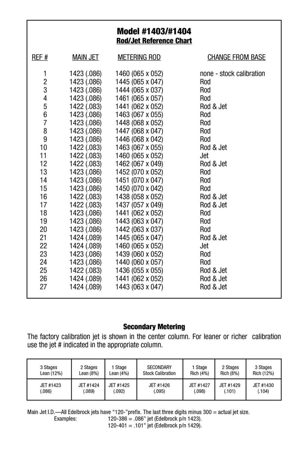 Edelbrock knows carbs. That's why they offer these calibration kits for Performers series carburetors. They include all the parts you need to help you get the best performance from Edelbrock carburetors.Brand: Edelbrock