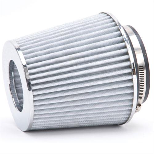Edelbrock Pro-Flo universal conical air filter elements are an economical way to ensure that your engine is getting clean air—without the expense of buying a new filter every few thousand miles. They're constructed for superior filtration and airflow performance. The filter elements feature triple chrome plated trim for a show-quality look and are available in black, red, white, and blue to complement any engine bay. They're also designed with three inlet adapter rings for use on 3 in., 3.5 in., and 4 in. inlet tube systems. Pro-Flo universal conical air filter elements also feature the Edelbrock exclusive Pro-Charge clean strip for easy maintenance. This strip will let you know when it's time to clean your filter.Brand: Edelbrock