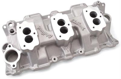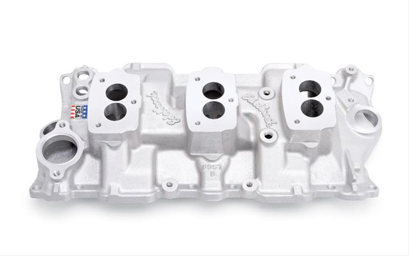You can give small block Chevys the nostalgic look of days gone by, as well as a healthy dose of performance, with Edelbrock's Three-Deuce intake manifolds. The balanced, 180 degree firing order arrangement of their port runners produces a broad power band that runs from idle up to 5,500 rpm, for power where you need it. In addition, they have a cast-in exhaust-gas heat riser and a front boss for an oil filler tube.Brand: Edelbrock