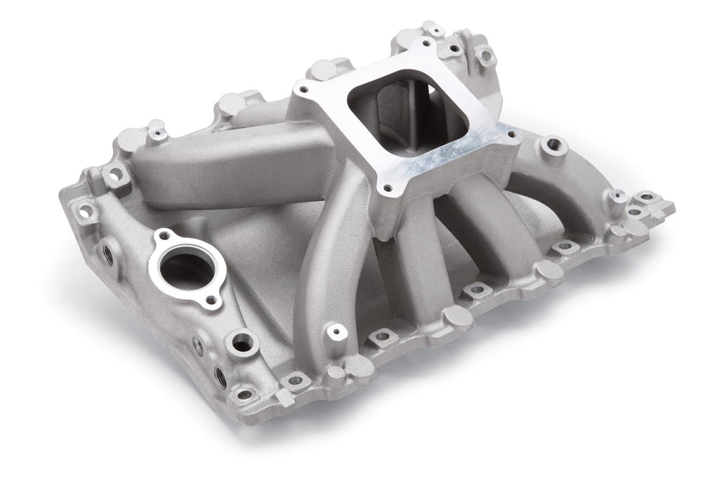 Edelbrock Victor Jr. carbureted intake manifolds are capable of supporting up to 600 hp. They accept a standard 4-barrel square bore carburetor. The manifolds are made of high-quality aluminum and feature a natural finish. The required electronic timing control module is sold separately .Brand: Edelbrock