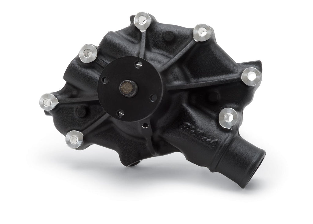 Get maximum cooling for the street or track. Edelbrock Victor Series high-volume water pumps are designed for maximum flow and equal coolant distribution in street cars, race cars, tow vehicles, and motor homes. The aluminum pumps have CNC-machined housings with special one-way internal passages that flow more coolant at higher velocities, even at low engine speeds. The CNC-machined impellers are larger than other impellers and have curved vanes that produce greater flow with less cavitation. Other features include heavy-duty roller bearing assemblies built to withstand higher torsional loads, billet steel hubs, leakproof seals, and gaskets. Most Victor Series pumps are available in your choice of satin, black, and polished finishes, or EnduraShine.Brand: Edelbrock