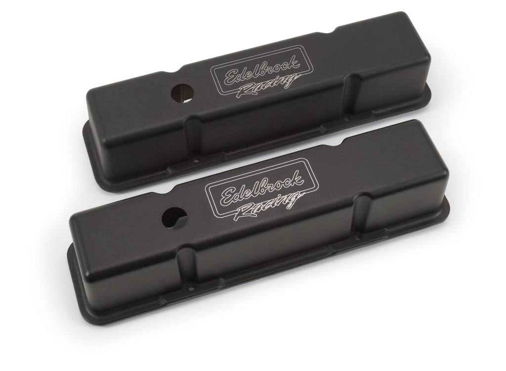 These Edelbrock Victor series valve covers feature a new black powdercoated finish that has a finely textured surface for a pleasing and unique finish. They are manufactured from die-cast aluminum and machined with a 1 1/4 in. breather hole to fit most aftermarket valve cover breathers. Available for Chevy or Ford engines, the Edelbrock Victor series valve covers are an excellent choice to finish off your cylinders. The unique, embossed Edelbrock Racing logo gives them a distinctive look. Choose between standard or tall height and make these Edelbrock Victor series valve covers the finishing touch on your engine.Brand: Edelbrock