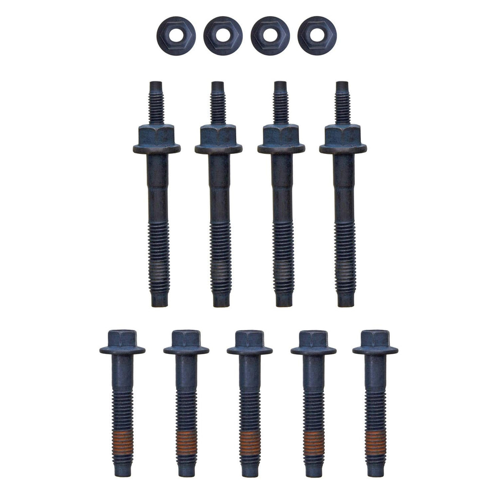 Fel-Pro exhaust manifold hardware is designed to replace broken, cracked, or stripped fasteners and administer sufficient clamping force to prevent exhaust leaks. The studs are machined from steel to inhibit fatigue, with a black coating to prevent corrosion. Washers are included. Order the hardware set recommended for your vehicle year/make and engine application.Brand: Fel-Pro