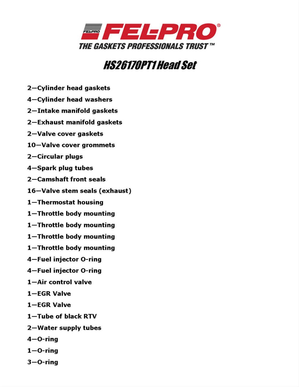 When you're looking to replace leaking or worn-out engine seals, Fel-Pro head gasket sets have you covered. Ideal for your stock rebuilds or street-driven cars and trucks, Fel-Pro gaskets will have you back on the road in no time. They're available in hundreds of configurations for fitment on countless vehicles and engine types. Order the set designed for your car, truck, van, or SUV. (These gaskets are not intended for race applications.)Brand: Fel-Pro