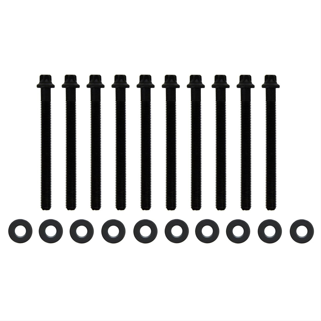 Fel-Pro headbolt kits contain a complete set of the highest quality headbolts and hardened washers available. They're cold-formed to ensure molecular integrity, then heat-treated prior to thread rolling and machining. Reduced-diameter bolt heads eliminate the need for valvetrain removal and facilitate cylinder head re-torquing. The bolts are available in a variety of head styles for fitment on specific vehicle and cylinder head applications.Brand: Fel-Pro