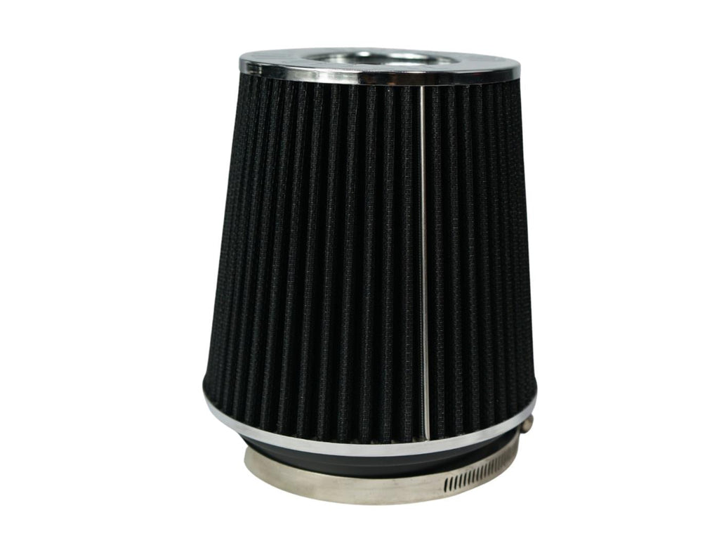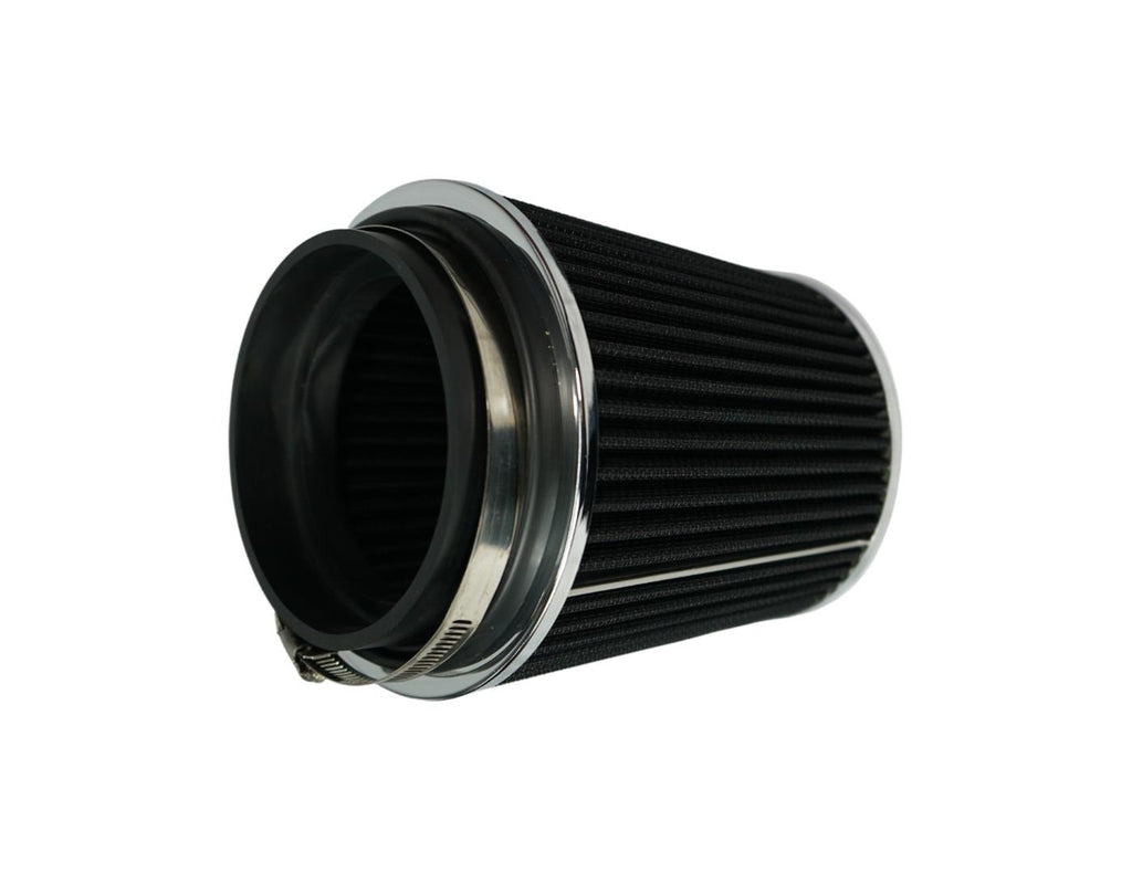 FiTech's cone style air filters feature an open design of the conical filter that allows the engine to pull air from both inside the cone, as well as from the outside perimeter. That nearly doubles the element area to capture any contaminant particles so only the cleanest air makes it into your intake. The cone shaped filter is capped on both ends with a show quality chrome housing securing the filter and a rubber coupler and heavy-duty clamp are supplied to seal over the flange of the throttle body creating a tight seal and secure mount. The cotton-based filter material is pre-oiled and ready to mount and can be washed and reused for many miles and years to come.Brand: FiTech Fuel Injection