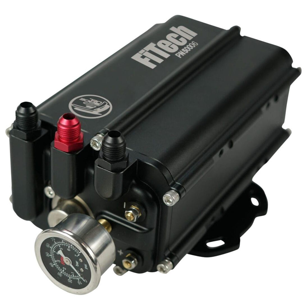 FiTech Force fuel systems make the upgrade to fuel injection easier! They simply connect to a stock mechanical or electric fuel pump, then supply the EFI system with high pressure through the use of an internal 340 lph (approximately 90 gph) pump. The strong, versatile bracket allows mounting under your existing fuel pump, which feeds the units. The assemblies hold a half-gallon of fuel to submerge the internal pump and keep it cool for long life, with no chance of fuel starvation. An internal regulator maintains the pressure at a consistent 58 psi—which is ideal for reliable EFI performance. Order a FiTech Force fuel system and forget about running a new feed line from the tank! Models are available in different configurations.