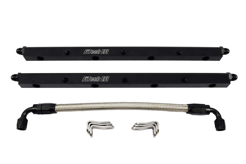 Notes: Will work with all FiTech LS1 systems. This fuel rail pair includes four -6 AN O-ring to -6 AN fittings and crossover hose.