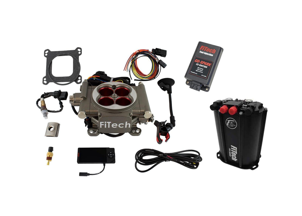 FiTech Go Street EFI 400 hp self-tuning fuel injection systems with Force Fuel systems make the switch from carburetor to EFI about as easy as it gets. Good for up to 400 hp, these 4-injector throttle bodies simply swap out your current 4-barrel carburetor for EFI performance. You don't have to mess with the ignition at all. The Force Fuel system helps quench its thirst with easy hookup and versatile mounting. FiTech Go Street EFI 400 hp and Force Fuel system combos are too easy not to go for! Order the model with options best suited to your application.