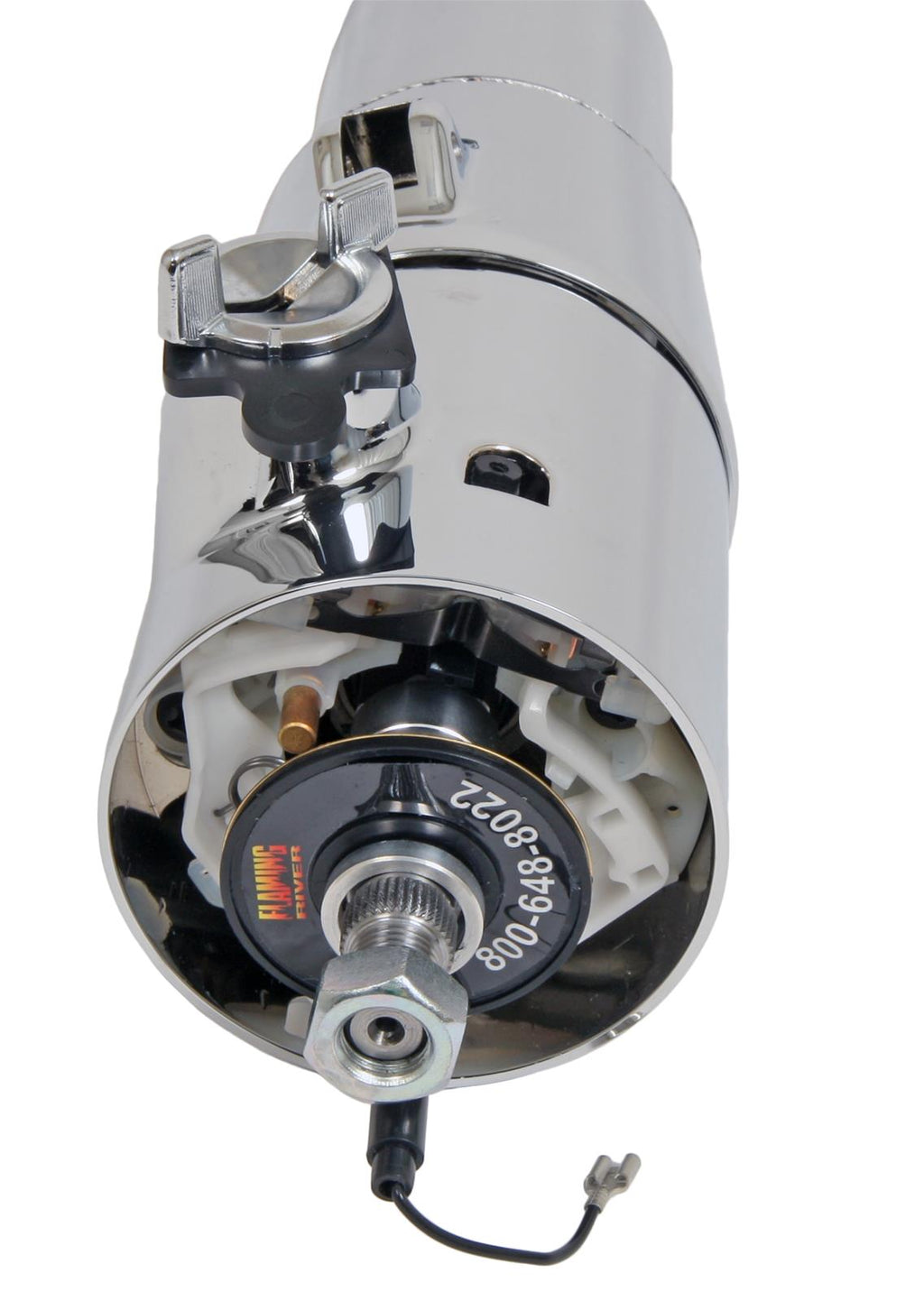 Flaming River tilt column shift steering columns feature large tube diameters and compact shrouds to create a unique custom look. Available in a variety of styles, lengths, and shaft sizes, they come complete with a gearshift knob, billet dress up kit (tilt, turn signal lever, and hazard knob), GM wiring (4 1/4 in. connector), and removable 12-position linkage arm. The columns are manufactured from high-quality 304 grade stainless steel, will never rust, and are available in a variety of finishes—including a paintable mill finish, black powdercoated, spray chromed, or polished to a high luster. Mill finish columns are shipped chemically clean and can be painted to match or highlight an interior with only minor preparation.