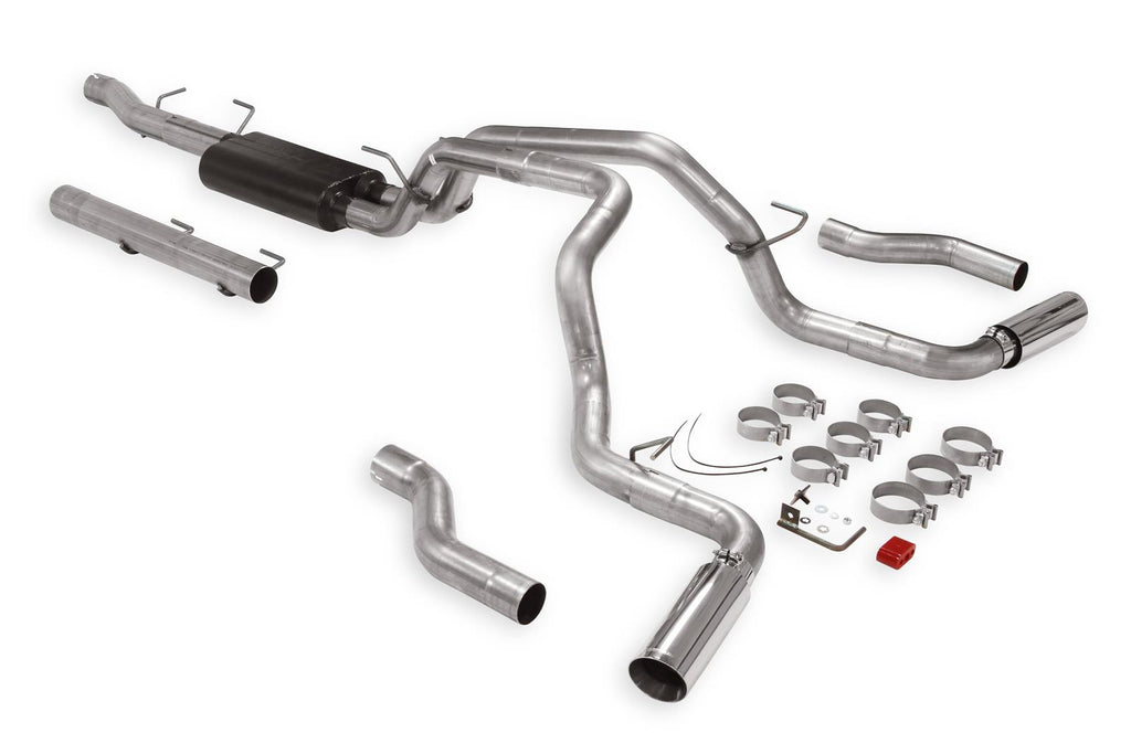Flowmaster American Thunder exhaust systems are designed with the latest exhaust technology available--resulting in improved acceleration, passing power, and fuel mileage. A key to these performance upgrades is Flowmaster's use of mandrel-bent tubing, which allows superior exhaust gas flow. The systems also feature mufflers (single or dual) that deliver plenty of the rich Flowmaster sound you expect. Components are built from stainless steel or aluminized steel; and some models include tips. American Thunder exhausts are available in more than a hundred configurations for fitment on specific truck and car applications.Brand: Flowmaster