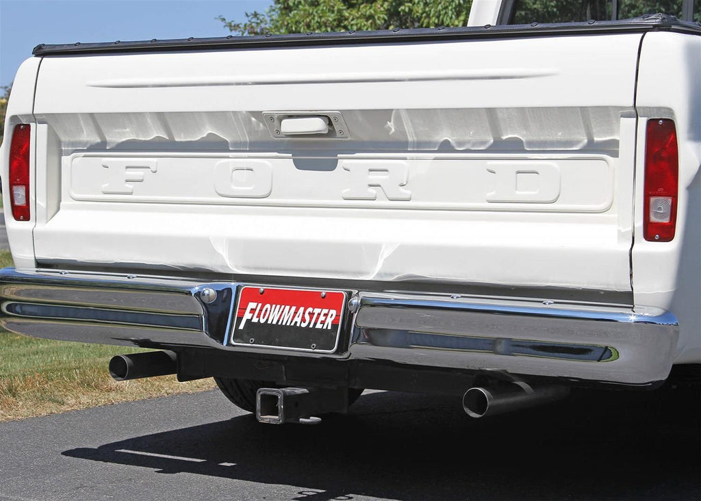 Flowmaster American Thunder exhaust systems are designed with the latest exhaust technology available--resulting in improved acceleration, passing power, and fuel mileage. A key to these performance upgrades is Flowmaster's use of mandrel-bent tubing, which allows superior exhaust gas flow. The systems also feature mufflers (single or dual) that deliver plenty of the rich Flowmaster sound you expect. Components are built from stainless steel or aluminized steel; and some models include tips. American Thunder exhausts are available in more than a hundred configurations for fitment on specific truck and car applications.Brand: Flowmaster