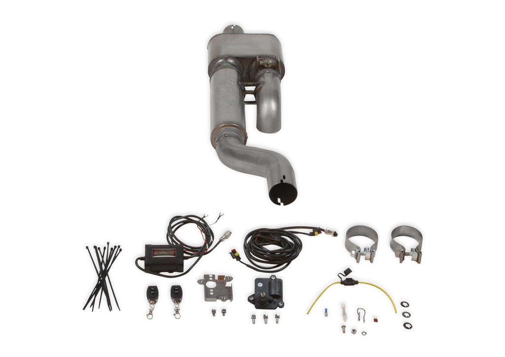 Flowmaster FlowFX active dual mode mufflers allow your exhaust tone to be mild or wild. With their split personalities, these direct-fit mufflers offer a nice performance tone—as well as a deep open exhaust sound with just a push of a button, thanks to the wireless controlled actuator valve on the Power Chamber, which redirects exhaust through the turndown. FlowFX systems feature mandrel-bent stainless steel construction, and include actuator motor, control unit, two wireless key fobs, all necessary wiring, hardware, and detailed instructions. Order the kit recommended for your vehicle.Brand: Flowmaster