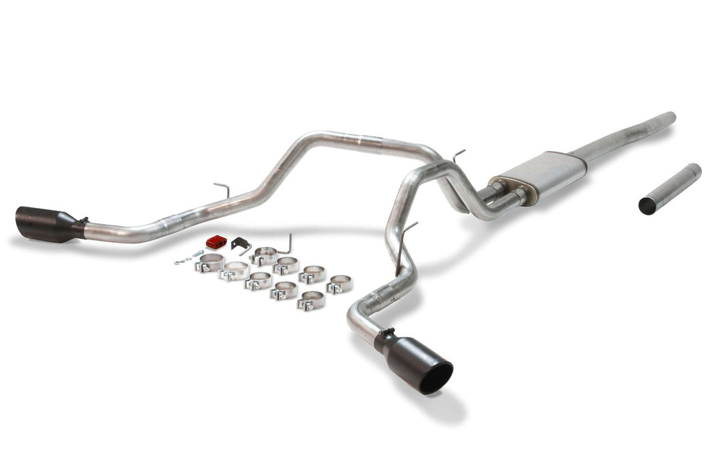 Flowmaster FlowFX exhaust systems are a "sound" choice for your vehicle. Delivering a moderately aggressive tone, they're built with bright 409S stainless steel tubing, and FlowFX straight-through mufflers with large cores for maximum performance and a deep sound. Many systems also include 304 stainless steel tips finished in a black ceramic coat or polished, and embossed with the Flowmaster logo. Flowmaster FlowFX exhaust systems are designed for ease-of-installation, and include all necessary parts, hardware, and detailed instructions. Choose the style, pipe size, muffler quantity and configuration for best fitment on your vehicle.Brand: Flowmaster