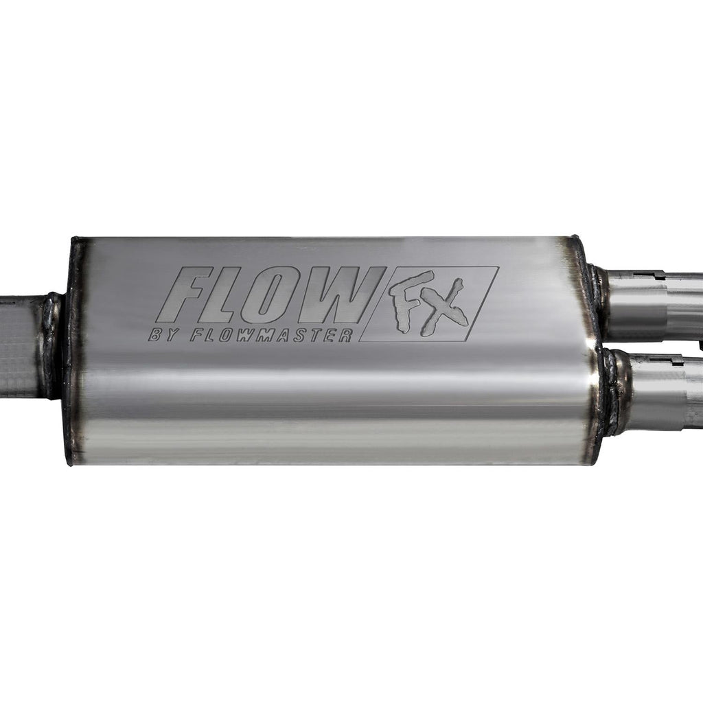 Flowmaster FlowFX exhaust systems are a "sound" choice for your vehicle. Delivering a moderately aggressive tone, they're built with bright 409S stainless steel tubing, and FlowFX straight-through mufflers with large cores for maximum performance and a deep sound. Many systems also include 304 stainless steel tips finished in a black ceramic coat or polished, and embossed with the Flowmaster logo. Flowmaster FlowFX exhaust systems are designed for ease-of-installation, and include all necessary parts, hardware, and detailed instructions. Choose the style, pipe size, muffler quantity and configuration for best fitment on your vehicle.Brand: Flowmaster