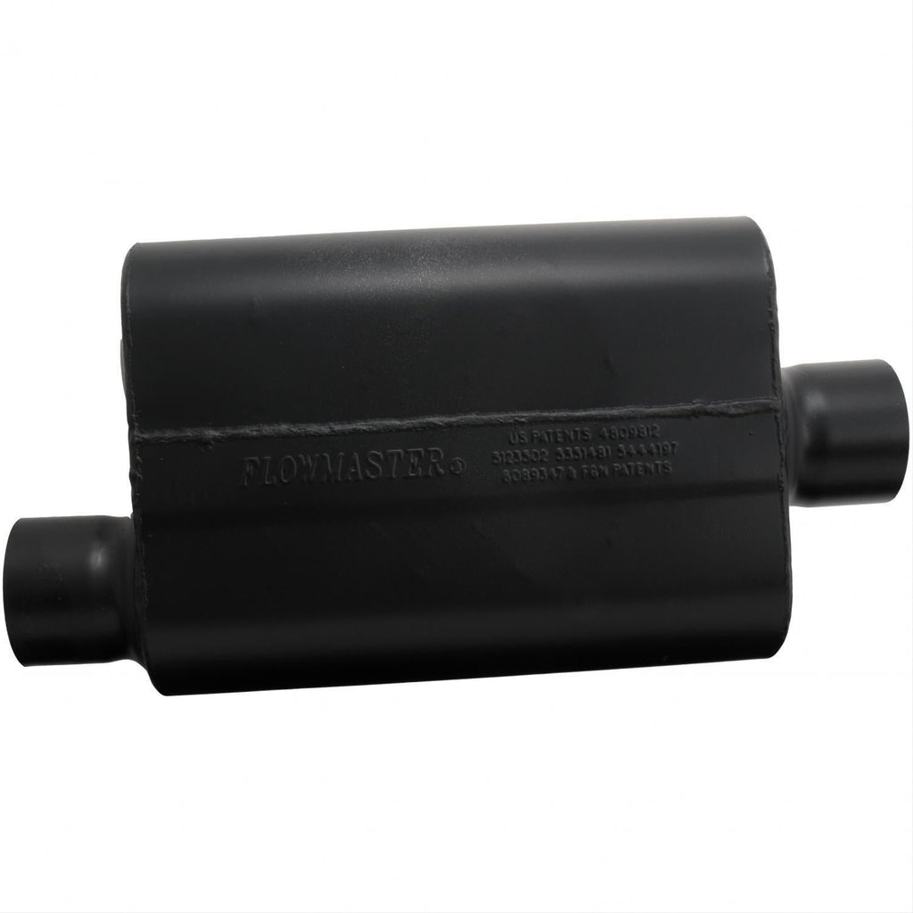 Flowmaster Super 44 Series mufflers use the same technology as the original Super 40 mufflers—but also offer some distinct advantages. The Super 44s deliver a deep, rich tone with an improved flow path radius, optimum internal flow, and sound control engineering, all created with Delta Flow technology. They're the most aggressive, deepest sounding, highest performing 4 in. case street mufflers that Flowmaster has ever built. These American-made, all-black mufflers exceed OEM specifications for use on street cars, race cars, and sport trucks. Super 44s are ideal when dynamic sound, torque, and horsepower improvements are demanded in a smaller high performance muffler. Their maximum performance and improved flow path will generate more torque and power than ever before! If you really want to hear your exhaust system inside as well as outside of your vehicle, then order the Flowmaster Super 44 muffler best suited to fit your application.Brand: Flowmaster