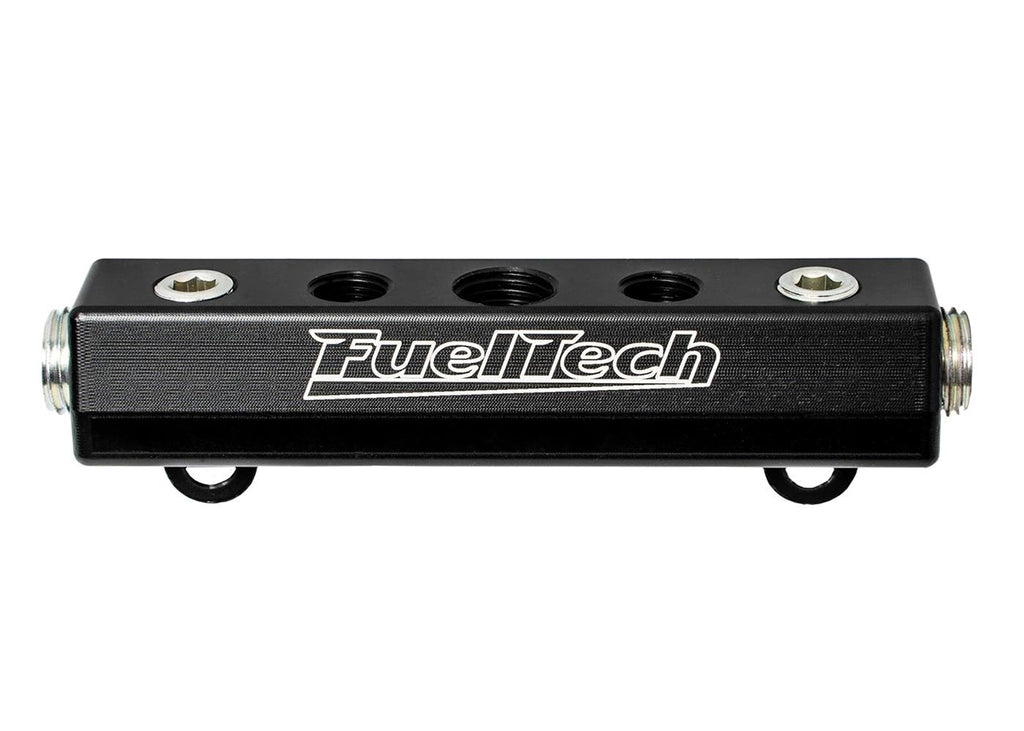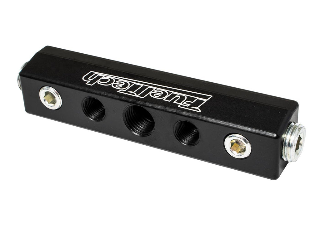FuelTech puts performance in your hands. Their vacuum distribution manifolds offer the perfect solution for running and organizing the vacuum lines on your race car. They feature seven vacuum ports (four 1/8 in. NPT and three 1/4 in. NPT) providing plenty of room to run all of your vacuum lines for blow-off valves, wastegates, and more. FuelTech vacuum distribution manifolds are crafted from billet aluminum, black anodized, and tagged with the FuelTech name.Brand: FuelTech
