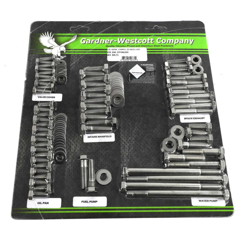 Gardner-Westcott engine dress-up bolt kits add a touch of class under your hood. The hardware is offered in a variety of materials, finishes, and head styles—with your choice of automotive logos or designs etched on the fasteners. Over a hundred different kits are available; order the model recommended for your vehicle and engine application.Brand: Gardner-Westcott Company
