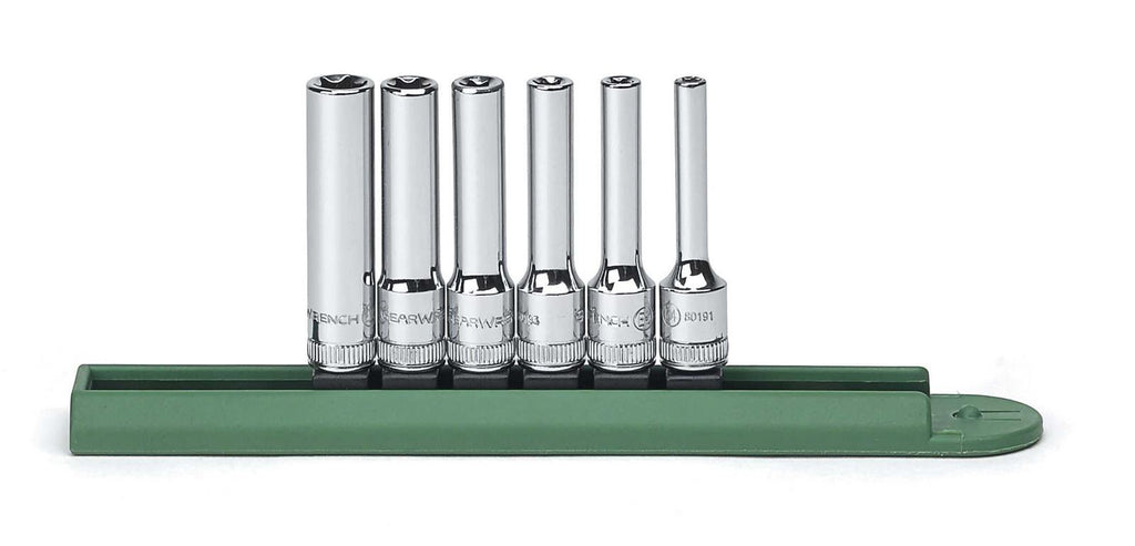 GearWrench external Torx bit socket sets are intended to be used on external Torx fasteners. All Torx bit sockets are made from alloy steel and heat-treated for maximum durability and long tool life. Standard sockets receive a black oxide finish, and the deep and universal sockets have a bright, full-polish that easily wipes clean and resists corrosion. For easy identification, the Torx bit sockets have hard stamped size markings. All Torx bit sockets meet or exceed ASME specifications. A socket rail for storage and organization is included. The only thing that might work harder than you is your tools. So, grab one of these tried and true Torx bit socket sets from GearWrench—a trusted brand that professional auto techs rely on. Choose the set(s) you desire to augment your tool arsenal.Brand: Gearwrench