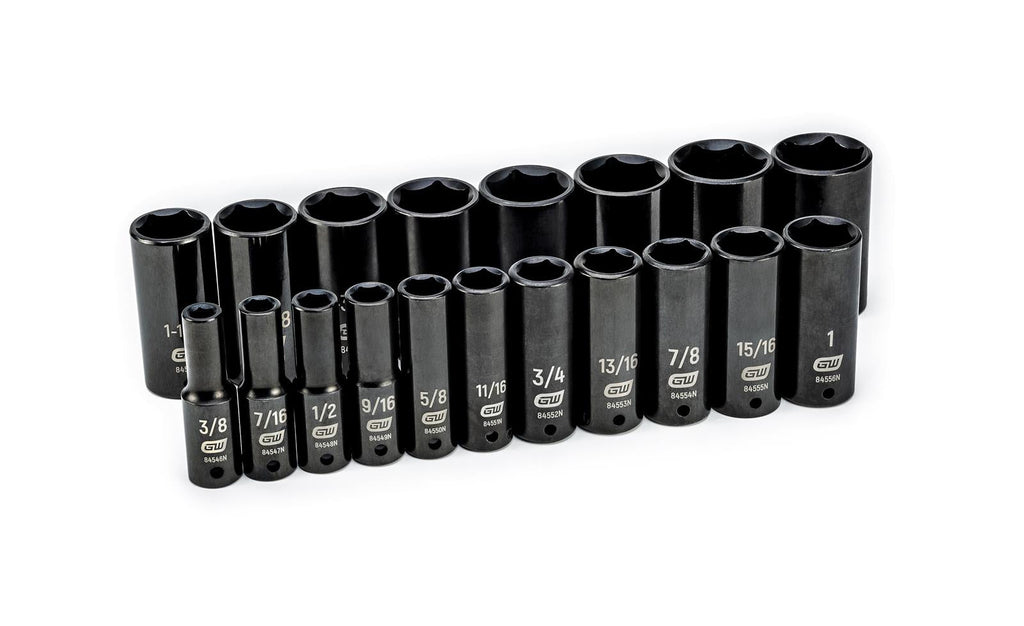 GearWrench impact socket sets are offered in many different groupings to augment your tool arsenal. Choose from several drive sizes, SAE or metric, standard or deep, or sets with a combination of all these characteristics and more. Each socket is manufactured from chromoly alloy steel (Cr-Mo) for exceptional strength and durability and finished with a manganese phosphate coating or black oxide for corrosion resistance. Choose the socket sets you desire to fill your toolbox.