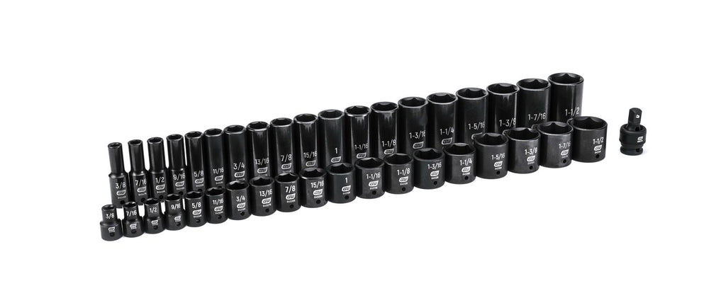 GearWrench impact socket sets are offered in many different groupings to augment your tool arsenal. Choose from several drive sizes, SAE or metric, standard or deep, or sets with a combination of all these characteristics and more. Each socket is manufactured from chromoly alloy steel (Cr-Mo) for exceptional strength and durability and finished with a manganese phosphate coating or black oxide for corrosion resistance. Choose the socket sets you desire to fill your toolbox.