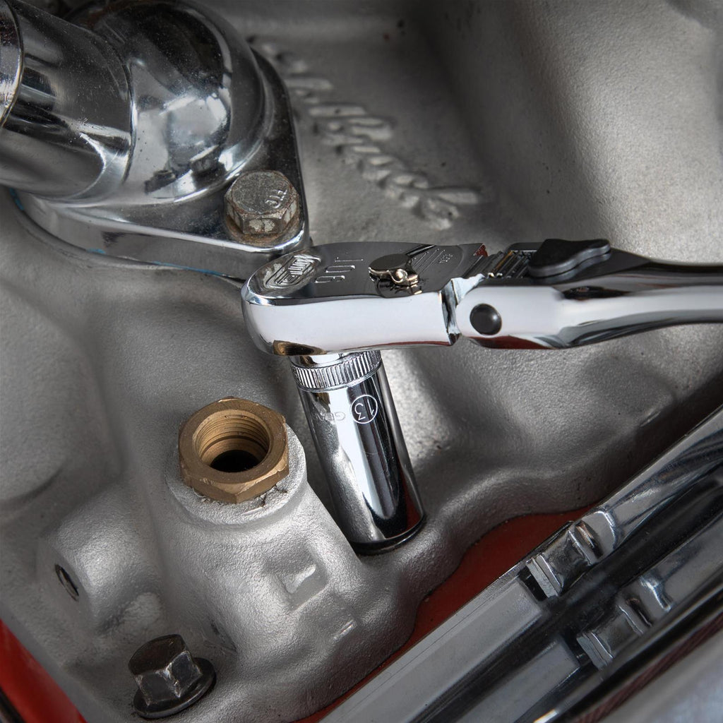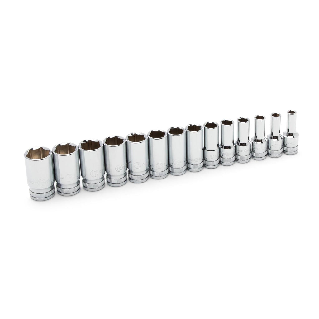 GearWrench mid-length socket sets deliver unprecedented speed, strength, and access to almost any job. Large, hard-stamped markings allow for easy identification and can be easily recognized as SAE (double line) or metric (knurled ring). Offered in different SAE or metric socket groupings, these mid-length sockets will make accessing fasteners in hard-to-reach places easier. Choose the sets you would like to add to your tool arsenal.