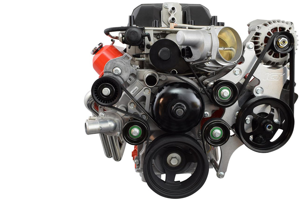 ICT Billet accessory belt tensioners are made from aerospace-grade billet aluminum. They are perfect for high-rpm applications where the automatic belt tensioner throws the serpentine belt on deceleration. ICT Billet accessory belt tensioners are available in Corvette, Camaro, and truck spacing; plus, they include a pulley and all mounting hardware.Brand: ICT Billet
