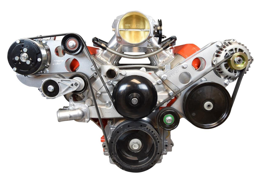 LS1 conversions are extremely popular for cars, trucks, and Jeeps. ICT Billet air conditioning compressor brackets are designed for setups without the stock LS A/C compressor. These brackets are milled from aerospace-grade billet aluminum for impressive strength and longevity. Units are available to be used with LS1 Camaro or truck crank pulleys. ICT Billet air conditioning compressor brackets will keep accessories safe and secure.Brand: ICT Billet