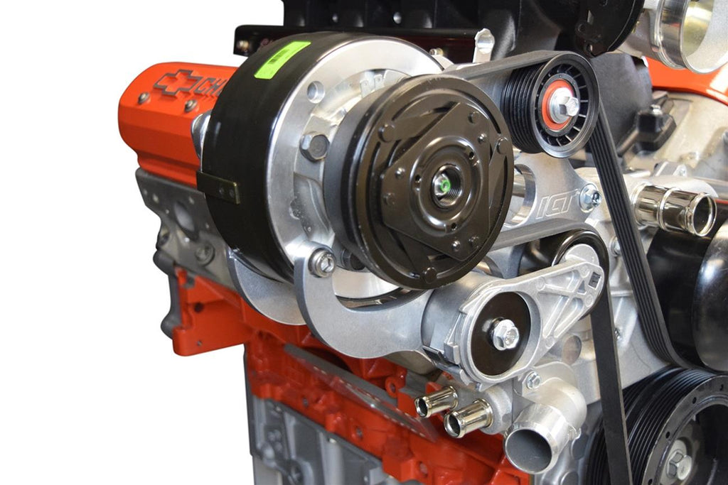 LS1 conversions are extremely popular for cars, trucks, and Jeeps. ICT Billet air conditioning compressor brackets are designed for setups without the stock LS A/C compressor. These brackets are milled from aerospace-grade billet aluminum for impressive strength and longevity. Units are available to be used with LS1 Camaro or truck crank pulleys. ICT Billet air conditioning compressor brackets will keep accessories safe and secure.Brand: ICT Billet