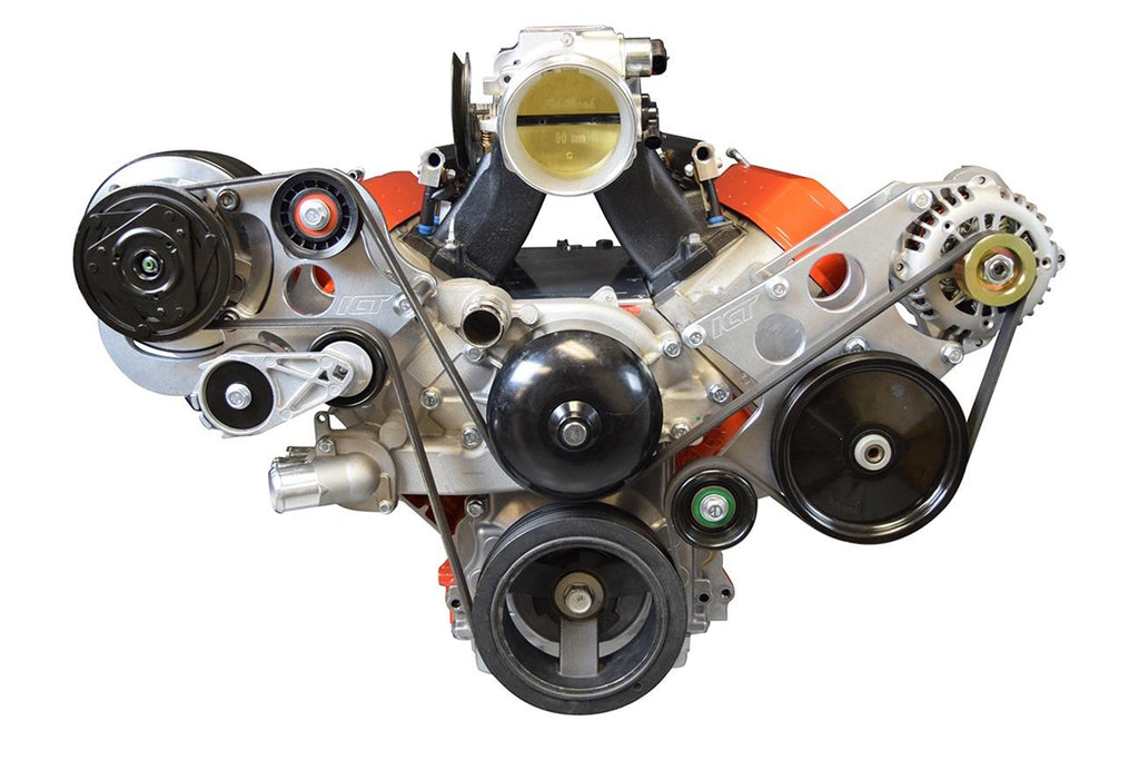 Notes: Kit includes a belt tensioner, compressor bracket and mounting hardware. Requires the use of a 1998-2002 LS1 Camaro or LS1 GTO crankshaft pulley.