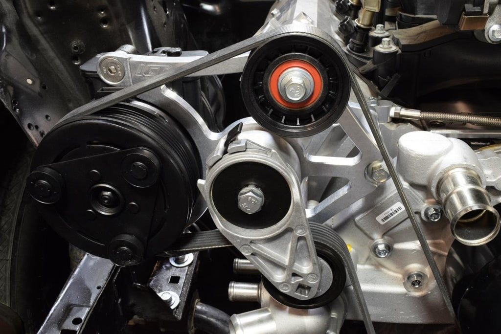 Notes: Kit includes a belt tensioner, compressor bracket, idler pulley and mounting hardware. Requires the use of a 1982-93 Mustang factory 6P148A compressor and a 1998-2002 LS1 Camaro or LS1 GTO crankshaft pulley.