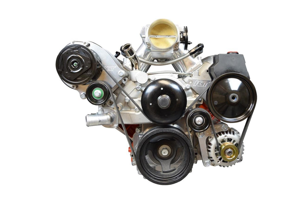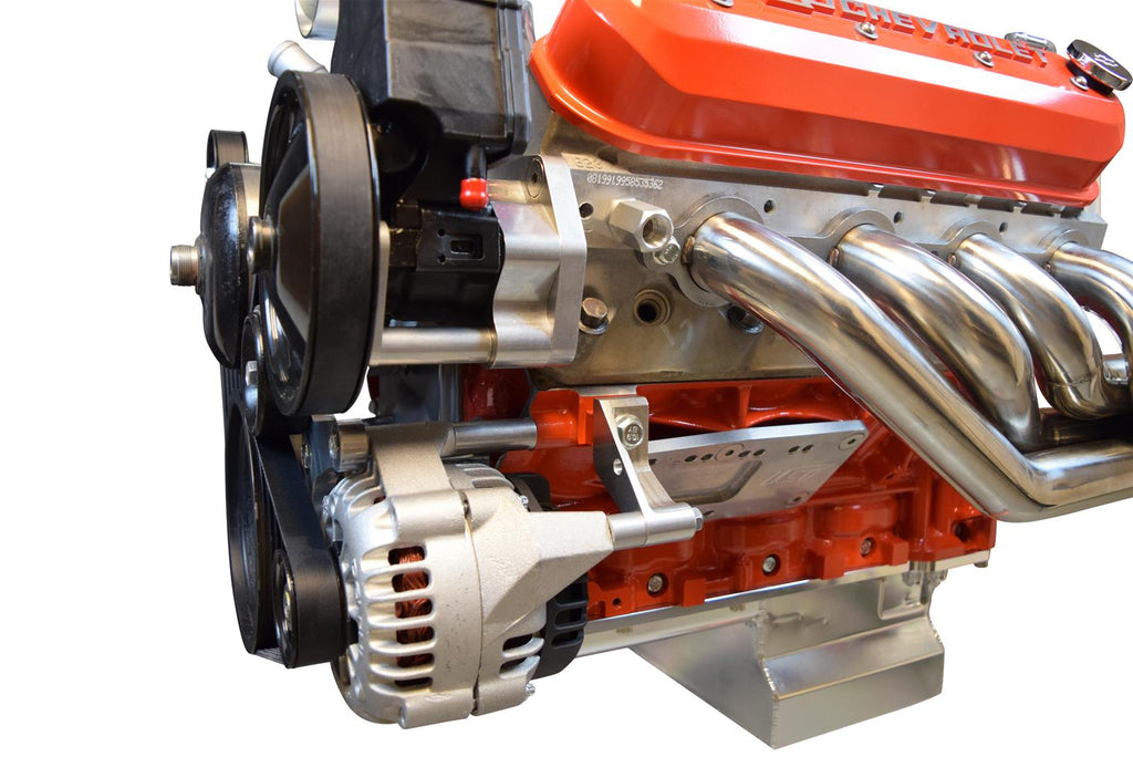 Notes: Includes idler pulley and rear support bracket. Truck blocks require second hole to be drilled. Requires 6-rib, 79 in. belt. Does not fit Corvette alternators.