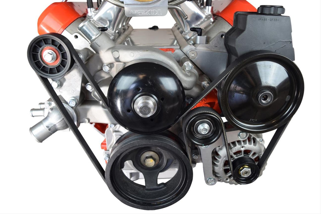 Notes: Kit includes alternator low mount brackets, spacers and bolts and power steering front and rear brackets, spacers and bolts. On truck blocks with only 1 mounting hole in the block, you will be required to drill a second mounting hole using drill template 551445.