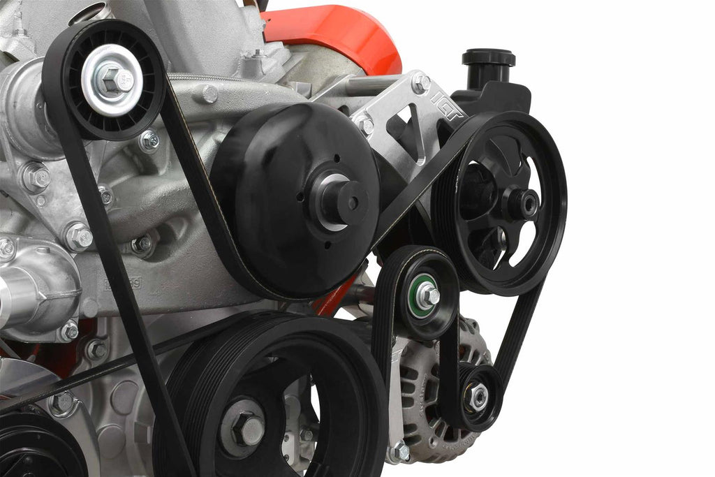 ICT Billet alternator brackets are made from aerospace-grade billet aluminum. They come packaged in kits that include alternator brackets, bolts, spacers, and all the necessary mounting hardware. They bolt to the face of the block and can only be used on blocks with at least two mounting holes on the front of the block.Brand: ICT Billet