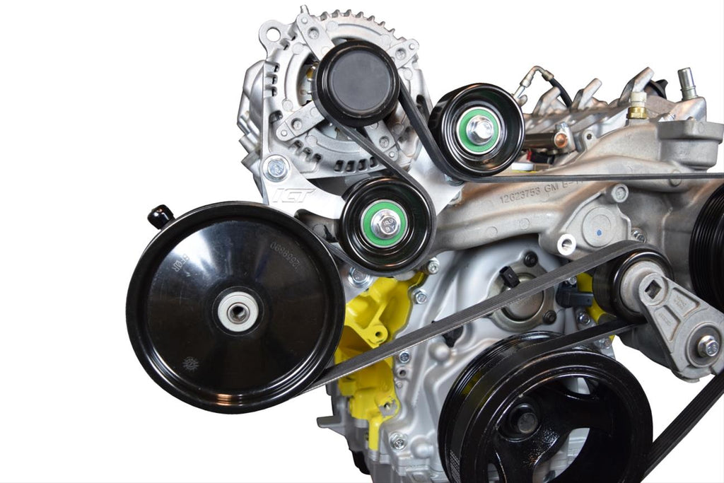 Notes: Kit is for a L83 truck crank pulley, water pump, and belt tensioner. Includes accessory brackets, idler pulley, bolts, and spacers. For corvette 97-04 power steering pump and pulley Will fit alternators from Gen 5 LT truck engines or any LS engine except Corvette. 145 and 160 AMP truck alternators require approximately 3/4" longer belt.