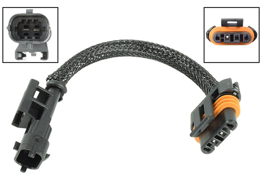 Notes: Used when converting from 2-pin high-amp GM alternator to standard 4-flat 105-amp GM alternator. Overall length is 6 in., 2-pin to 4-pin flat connector.