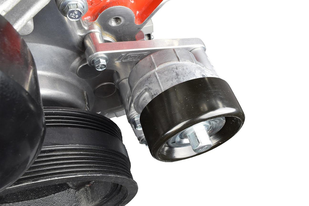 ICT Billet belt tensioner relocation bracket kits reposition your belt tensioners to maintain correct alignment to the belt. Ensure that your belt remains at a nearly constant tension for maximum accessory drive component life, while still preventing belt slip. When properly applied, these kits provide consistent tension and help dampen belt system vibrations. They are made from aerospace-grade billet aluminum and include a bracket, bolts, spacers, and, where noted, a pulley.Brand: ICT Billet