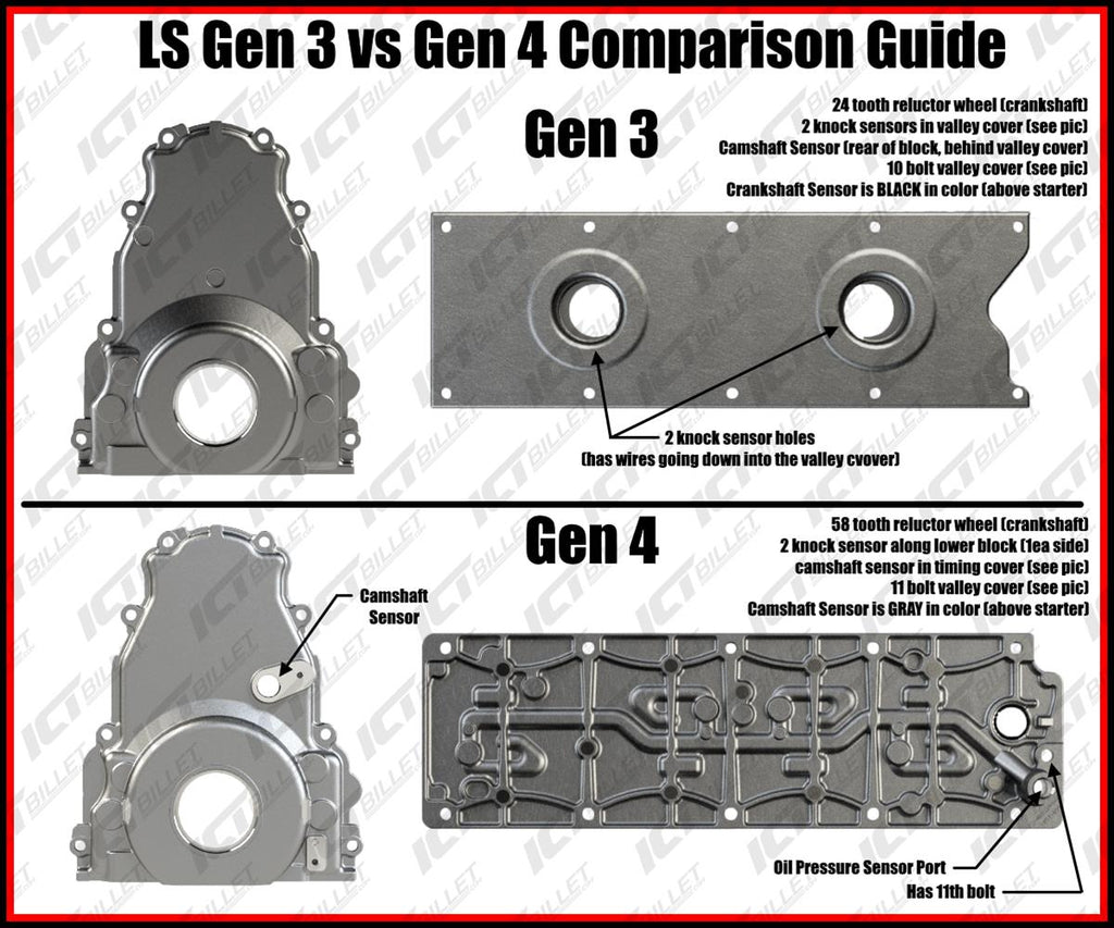 ICT Billet camshaft position sensor adapter harnesses are used when converting from rear-block sensor to front-cover sensor. They will, for example, adapt a Gen IV LS sensor to a Gen III harness. The harnesses are made with OEM-grade TXL wire and assembled with OEM tooling and OEM Delphi (connector, lock, seals, and terminals). Order the model recommended for your application.Brand: ICT Billet