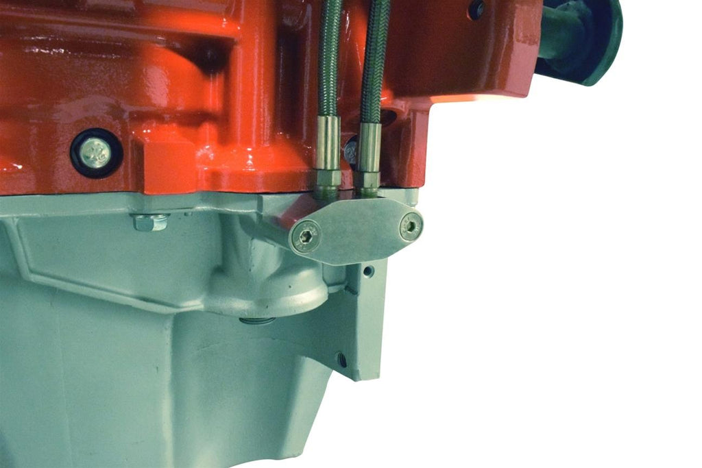 Notes: Adapters inlet and outlet sizes are 1/8 in. NPT. Fits LS series engines except GTO front sump oil pans.